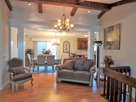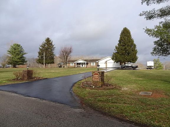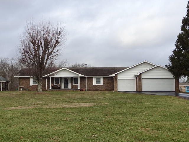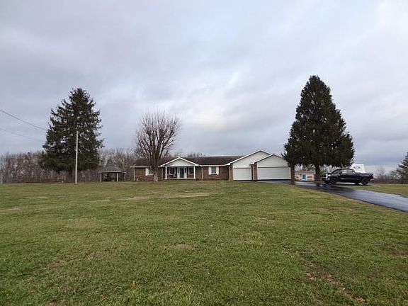 10 ACRES- Full brick 4 bdrm, 3 bath home, 5 car att. garage or can be drive through, Main level offers the master bdrm suite and a guest room & bath, kitchen with stainless appliances, granite countertops, tile backsplash, brkft bar, wood beams with cathedral ceiling in the living room, and a sunken family room, crown molding, textured walls, the finished basement has 2nd living area, eat in kitchen, 2 bdrms, 1 bath, utility and storage rooms, covered patio with large open deck above for taking in the sunset, pasture & wood views, gazebo with electric lighting, storage shed plus an indoor kennel with 3 separate runners for your 4 legged friends, this home has a lot to offer.