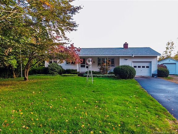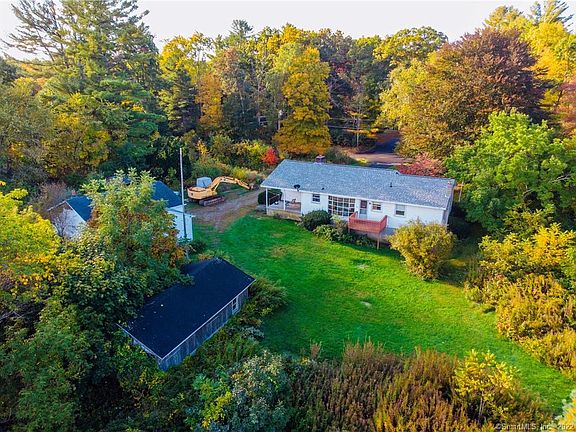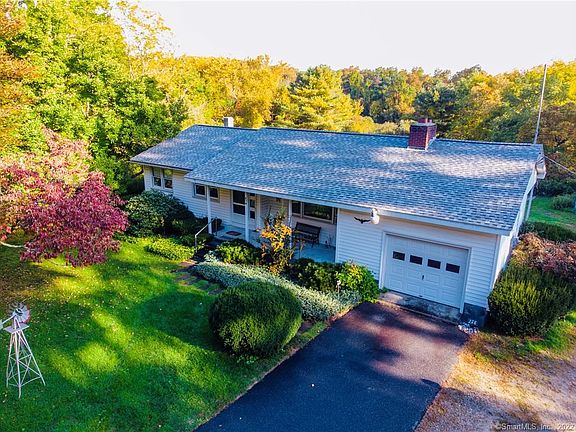 BRAND NEW $15,000 ROOF on this OVERSIZED Ranch w/ BEAUTIFUL HARDWOOD FLOORS on 3.38 PRIVATE ACRES! 720 s.f. HUGE GARAGE w/ commercial door, workshop and spare room for an office for the car enthusiast in addition to an attached 1 car garage on the home. NEWER (8yrs) BOILER, HOT WATER HEATER and NEW VINYL w/UPDATED ELECTRICAL. LARGE FIREPLACED living room to enjoy your Fall evenings and 2 bedrooms next to an office w/ BUILT IN BOOKSHELVES, APPLIANCED eat in kitchen w/ ceiling to floor windows. Large vanity in the spacious bathroom. Off the back of the home you have a 14 x 11 COVERED OPEN PORCH and a 10 x 8 DECK to watch the deer stroll by. HUGE WALKOUT BASEMENT w/ woodstove hook up. and SHEDS convey. PAVED DRIVEWAY and right on the MASS & RI line for easy commute. QUALITY built home just needs a little updating and TLC.