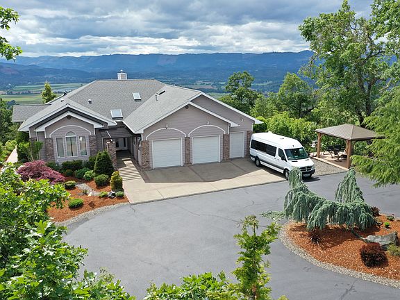 Gorgeous custom home on 5 acres in gated community atop Redtail Ridge Lane with impressive views of the vineyards in Melrose, South and North Umpqua Rivers, golf course and the Callahan Mountains! Soaring high ceilings, spacious rooms, and plenty of windows to enjoy the scenery. Expansive patios and landscaped all around! Gated community with gated driveway ensures your security and privacy! Additional detached 62ft x 30ft shop.
