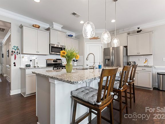 Located in the heart of Lake Wylie this awesome 4-bedroom, 2-bathroom home, built in 2019 is decked out with modern features like nice hardwood flooring, gorgeous granite countertops and crown moulding throughout! The primary suite features a spa-like bathroom with a relaxing soaking tub, a large tile shower, and an expansive walk-in closet that offers plenty of storage. Enjoy the covered back porch and fenced in yard offering nice trees for shade. Plus, there’s a paver patio with a firepit! This neighborhood has everything you need to stay active and have fun: community pool, tennis courts, clubhouse, and a playground! Want to head over to the lake? Awesome! You are only 3 minutes away from the public boat ramp.