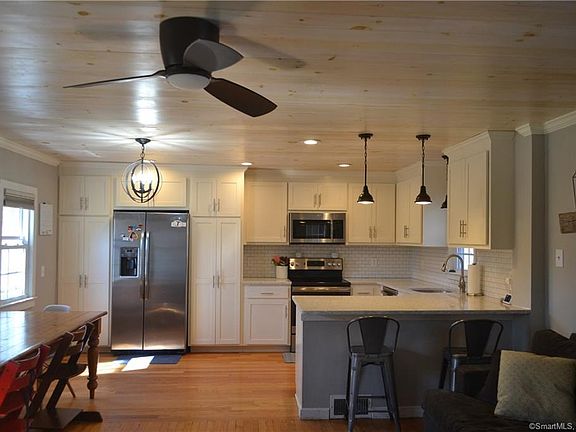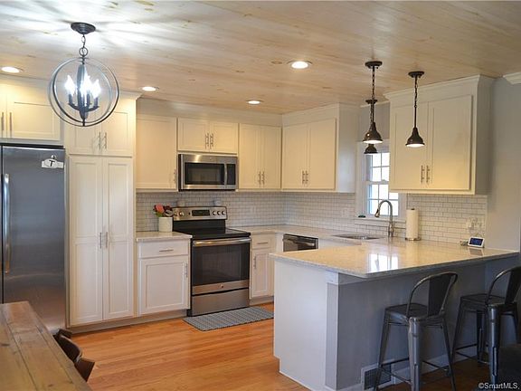 Move right in and enjoy your new home Very well maintained and nicely remodeled Cape. You will love this spacious kitchen with new granite countertops, new appliances, lovely new cabinets with a Lazy Susan and large pantry and a gorgeous pickled pine ceiling with ceiling fan. The bathroom is recently remodeled with lovely subway tiling and new vanity and mirror. There are 2 bedrooms on the first floor and one on the second floor with a desk/office area.The backyard is very pretty with a fenced garden area, patio and playground area. Home is conveniently located to the center of town, schools, shopping areas, town pool and library, restaurants, highway, the wine trail and so many conveniences. You can walk your dog to the dog park from this home. Be a part of this wonderful community and the excellent schools Southbury is known to have.