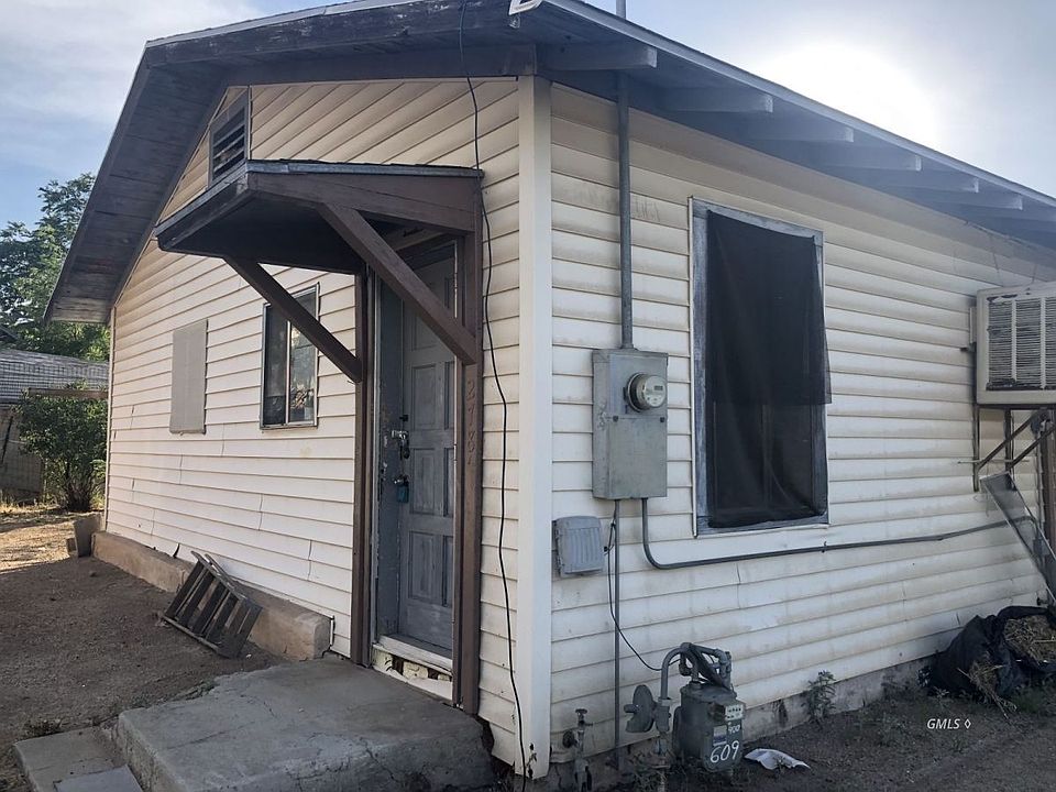 This home needs some TLC but it's priced right! It has no maintenance vinyl Siding, large tiered corner lot, gas fireplace, historic garage and an unfinished basement for all your storage. You will love stepping back in time with the metal cabinets and claw foot tub! The roof and wiring were updated within the last ten years.
