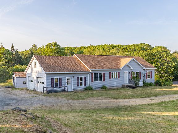 Spacious 3-bedroom, 2.5-bath ranch-style home situated on 29.5± acres with water frontage on the Pleasant River. This property features an attached 2-car garage, additional garage door access to the basement, and a detached, spray-foam insulated garage equipped with a car lift—ideal for vehicle storage or a workshop.