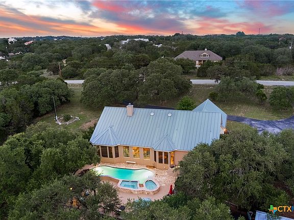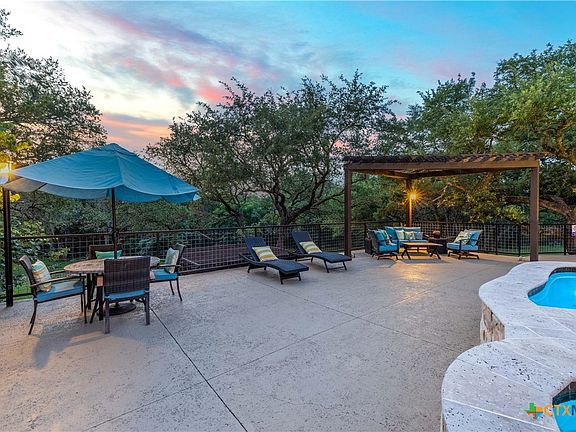 Experience resort-style living in this contemporary Hill Country estate set on more than 5 acres in the coveted River Chase community. The backyard is a private oasis, featuring a sparkling pool, spacious patio, elegant pergola, and mature trees that create a peaceful haven. Inside, the home offers over 3,100 square feet of thoughtfully designed space featuring wood and slate flooring throughout, along with high ceilings, crown molding, and plantation shutters that add warmth and timeless sophistication. The living room is bright, with built-in bookshelves and expansive windows offering views of the pool. The kitchen offers an island, beautiful countertops, plenty of cabinetry, and a cozy breakfast nook. An elegant formal dining room sits just off the kitchen, offering a dedicated space for hosting. The split primary suite offers a spacious retreat, complete with a luxurious en-suite bath featuring double vanities, a walk-in shower, stunning garden tub, and a generous walk-in closet. Two additional bedrooms, plus a dedicated office that could easily serve as a fourth bedroom, provide flexibility to fit any lifestyle. Upstairs, an oversized attic offers excellent potential for a game room, loft, or future expansion. Outdoors, function meets form with a 36-foot-high garage and an additional storage building ideal for RV, boat, or equipment storage. A fenced area provides a secure space for pets, and the property includes its own private well for added independence and long-term value. Whether lounging poolside beneath the pergola or enjoying a summer swim, the outdoor space offers a perfect balance of relaxation and recreation. As a resident of River Chase, enjoy exclusive access to exceptional amenities including a private Guadalupe River park, swimming pool, fitness center, clubhouse, sports courts, and scenic walking trails-all just minutes from New Braunfels. This rare blend of luxury, land, and lifestyle captures the essence of Hill Country living at its finest!