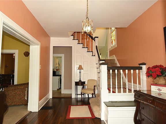 This charming all-brick Colonial, 5 beds 2.5 baths, sits nestled on Bellevue’s most sought-after streets. The home boasts a columned front porch that welcomes you into a classic interior with expansive living areas and high ceilings. The entry foyer has original gleaming hardwood floors with a spacious living room to the left followed by an expansive dining room. The kitchen is highly functional with a high ceiling and modern appliances and is anchored by a smartly updated first-floor powder room/laundry room. Beautiful stained-glass window greets you on the stairs to the 2nd fl. Once on the 2nd fl, you will find the beautifully redesigned and oversized primary suite, along with 2 additional bedrooms and full bathroom. One of the additional two bedrooms has a private balcony to enjoy some quiet time. The 3rd fl has 2 more bedrooms with an updated full bathroom with a heated floor. This meticulously maintained and well-loved home was further enhanced with the addition of central air.