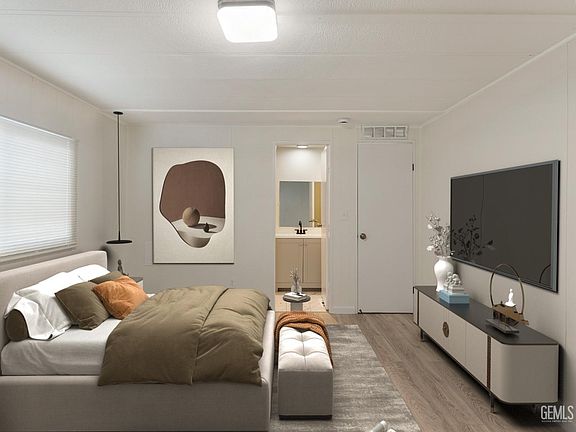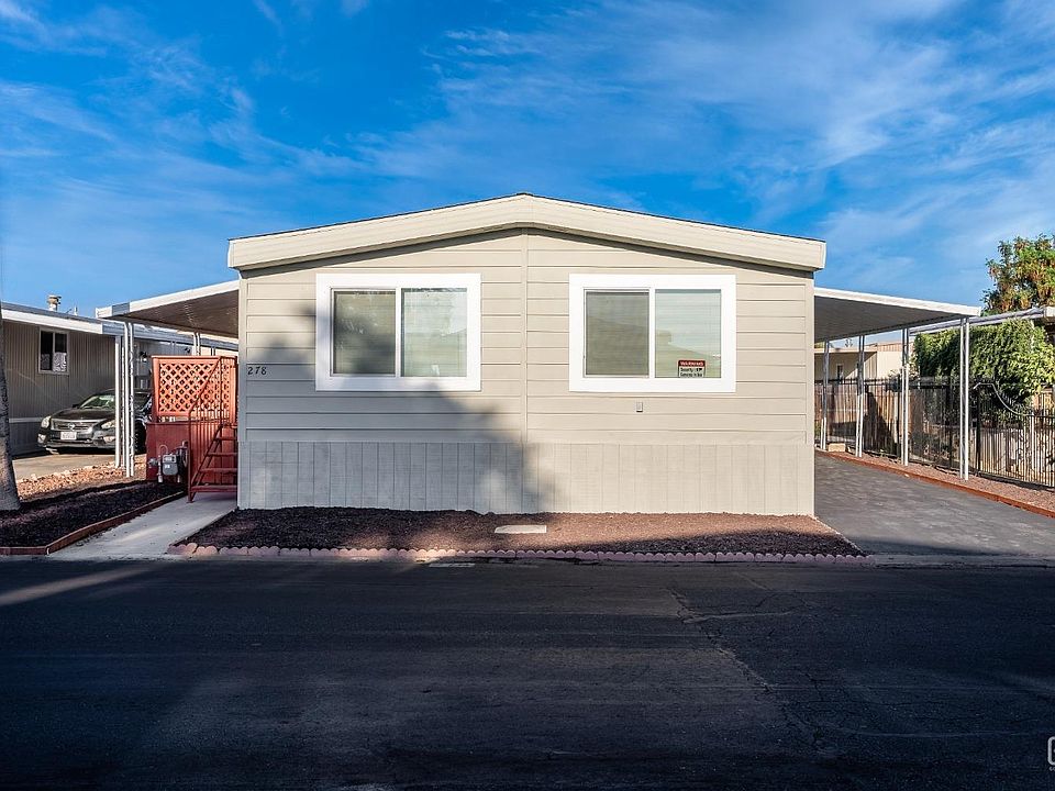 Gated luxury Mobile Home living. Enjoy 1344sf 3 bed 2 bath home with large open great room, large dining area with built in cabinets, open kitchen with new cabinets, new stainless appliances, new stainless sink, freshly painted inside and out, new dual pane windows, recessed lighting, new fixtures, new wood laminate flooring throughout, indoor laundry, central a/c and much more.