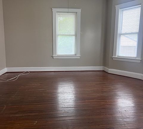 1 bedroom apartment on 1st Floor, large living room and bedroom, lots of windows. Quite street, Large back yard, ON street parking. Available for immediate occupancy. LAUNDRY IN UNIT!! Landlord requires a credit score of 650 minimum. 1 year lease required- Renter is responsible for ALL utilities and water- snow removal of stairs and walkways. 2 months deposit required, min credit score of 650. NO PETS