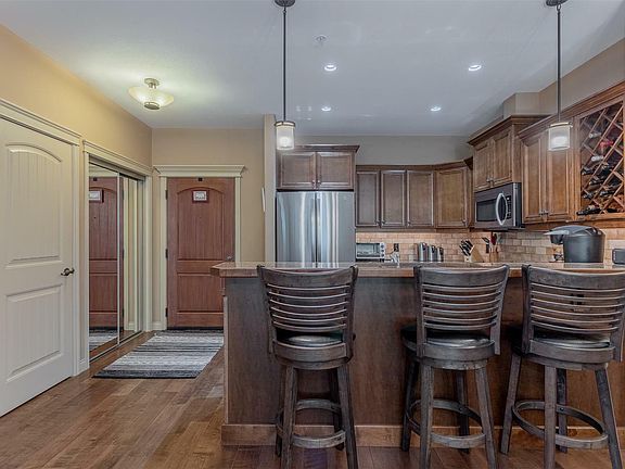 Beautifully maintained 2 bd, 2 bath high-end unit in Terravita. This is one of the best buildings, complete with gorgeous green space and secure and private deck. The complex is built on the edge of Shannon Lake golf course and secured with private entry gates. Some of the many features of this unit are: stone fireplace, extensive millwork, hand scraped maple flooring , stainless appliances and granite countertops. Loads of space for the home chef. Extra pantry space in the laundry room if you wish. HEATED bathroom floors in the primary ensuite. Double vanity, undermount night lighting that is so much easier on the eyes. LEASE HAS BEEN PRE-PAID (builder lease). Very well managed complex. Rentals are permitted. Currently tenanted to someone who could stay or go - up to you. Up to 2 pets permitted with some restrictions. BBQ is permitted on the deck. Come check it out! It's a gorgeous home.