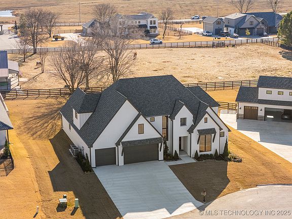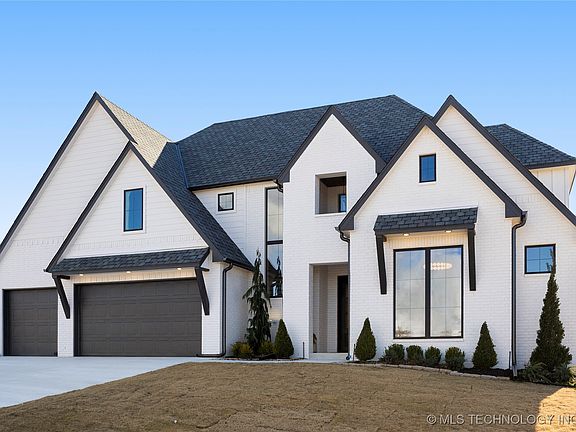 This exquisite new construction home boasts 5 bedrooms, 5 bathrooms, 3 living spaces and is situated on an approximately 1/2 acre greenbelt lot in a gated neighborhood. Enter through the 8' iron door into the spacious entry with 18' ceilings. First floor includes private office, primary and second bedroom suites, great room, and 2nd downstairs media/living space. Upstairs features 3 bedrooms with ensuites, and game room. Custom cabinetry including white oak kitchen with commercial style appliance package, dual sinks, and built-in refrigerator/freezer. Living area with vaulted and beamed ceiling, and floor to ceiling fireplace. Extensive hardwood floors through out, detailed trim features through out, foam insulation, high efficiency HVAC, tankless H2O, class 4 impact resistant shingles. This one is a must see!