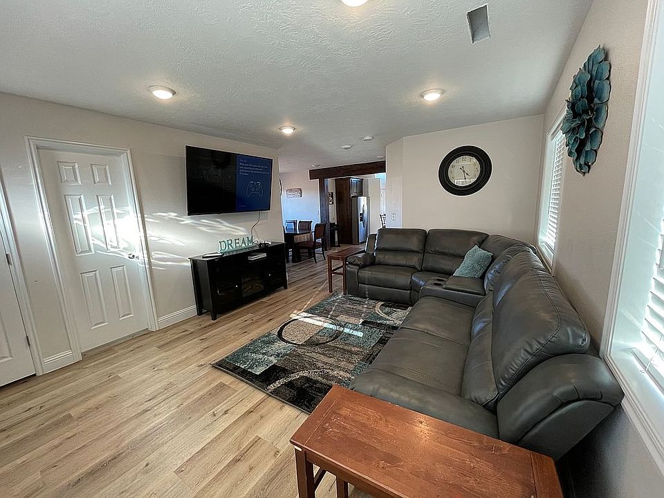 4 bedrooms, 2.5 bathrooms, newly remodeled. 2 stories, 1600 sq ft. , 1 acre lot, private well. Fenced/landscaped yard, sidewalk, fruit trees, finished shed. Central heat, fireplace, jacuzzi, vaulted ceilings, skylights. $249,000 OBO Text or call for details. (435) 680-7669 Beautiful home! A lot of windows so it’s bright and fun.
