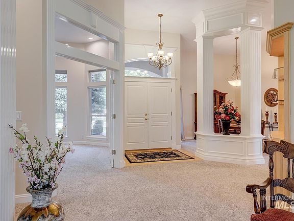 WOW!! great price!! For a beautiful single level home that sits on Lakeview Golf Course. The minute you walk through the door you will love the big open feeling of this home. large windows, high ceilings. Master has double closets and private entrance to patio. Master bath has dual vanities, a soaker tub and walk in shower. Large laundry room. The gorgeous kitchen has maple cabinets, all newer appliances with a gas stove, hardwood floors, a breakfast bar and a large eating space. High end wood wrapped windows and trim work throughout home. You'll enjoy the beautiful outdoor space as you sit out on the covered patio complete with a woodburning fireplace. To top it all off this immaculate home has a newer roof and HVAC, a water softener, and newer interior/exterior paint. The 3-car garage and both front and rear patios have all new epoxied floors. Beautiful landscaping with mature trees. LOCATION! just 5 minutes to I- 84 and all new shops and restaurants!