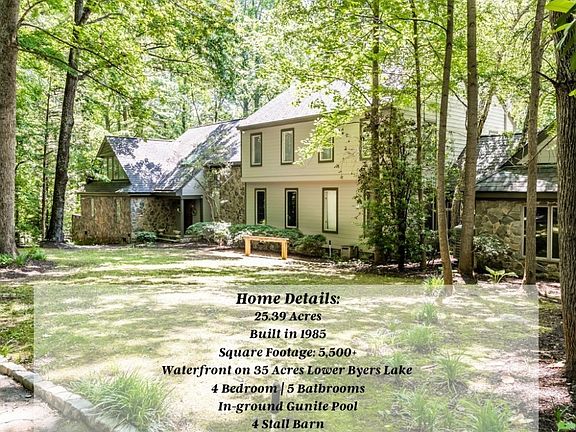 Welcome to Lakefyeld!An expansive waterfront residence features nothing short of a spectacular wooded and pastoral balance to accommodate your every equestrian or farming need. Situated on a 35 acre lake with 500+ feet of water frontage,25+ acres of beautiful hardwoods and established pasture, with room to grow.The expandable 4 stall Barn has Tack Room with 1/2 bath, wash room, birthing stall, hay loft, and drive thru center aisle. The home features over 5,500 sq ft of living space w/ 1st and 2nd floor Primary suites, hardwood floors, vaulted Great Room, and spectacular oversized stone fireplace. Gather with friends and family at the private bar or head to the french country Kitchen w/ brick backsplash and butlers pantry where cooking will be a pleasure. There is no end to the entertaining in your spacious Dining room that easily seats 12 guests. Enjoy your coffee taking in the lake views in the 3 season morning room. The Primary suite holds nothing back in space or natural light, with a private patio. Outdoor entertainers paradise with Gunite pool, outdoor kitchen, his/her outdoor bathrooms, lake dock and pier. Too many features to list! ~please see attached Property Feature Sheet
