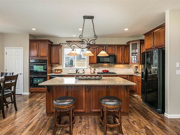 Gorgeous 4 bedroom 4 bath home conveniently located in highly sought after Meadows neighborhood. This large quarter acre corner lot has a beautiful full facade of brick. This home was extensively remodeled in 2017 with new beautiful hardwood floors, carpet, interior paint, balusters, kitchen backsplash, stone around fireplace. Open floor plan, large gourmet kitchen with double ovens. Lofted ceilings, Bedroom on main with attached 3/4 bath, 3 bedrooms up including a master suite with 5 piece bath. Laundry on same level as bedrooms. Finished basement with bathroom, office, theater room and game areas. The bus stop picks up for Clear Sky, CRMS and CVHS children right outside the house. Newer roof and exterior paint, concrete window wells, insulated garage. Walk to The Grange w no major roads to cross Many parks and activities nearby. Amazing unobstructed views of town firework show, large flat grass area. Has never had any pets at the house. Home is built by original Village Homes.