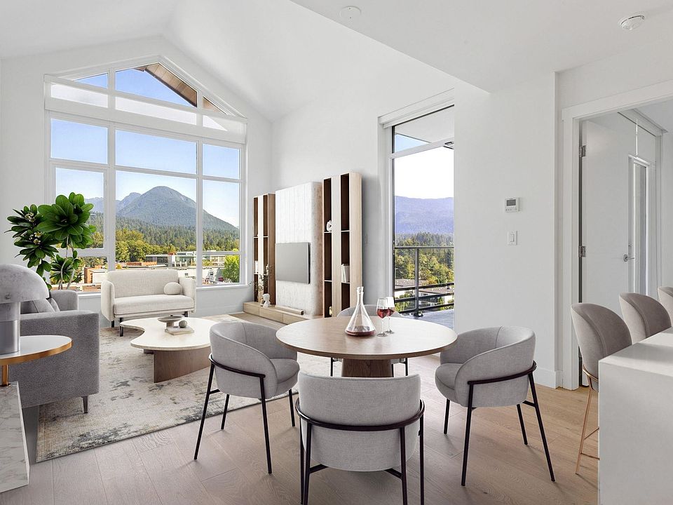 Lynn Valley Living in the Residences by BOSA! Beautiful 1000+ square foot 2-BEDROOM, 2-BATH plus DEN home with stunning VIEWS of snow-capped North Shore mountains. Modern open-concept layout features with soaring cathedral vaulted ceilings for maximum light and bringing the outdoors in. Entertaining takes centre stage with the Chefs kitchen, premium appliances and seamless indoor-outdoor living. Solid concrete building by BOSA means peace of mind. Premium amenities along with premium location just steps to Lynn Valley Centre for shopping and dining world-class hiking and biking trails outside your door. Includes oversized storage locker just down the hall and parking. Pets welcome. Call to view and see why we're excited to present this rare offering!