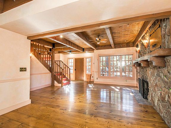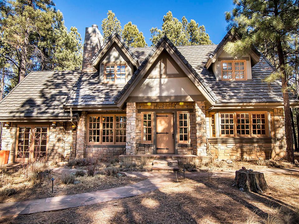 At Last, 'Your Fantasy Cottage' in one of the most desired neighborhoods in Flagstaff! Secluded, relaxing, bordering Forest & unique Cabin craftsmanship w/ numerous cottage windows, Wide-plank wood flooring and staircase, rod iron light fixtures, wood-beam ceilings w/ tongue & groove, stonewall fireplace w/ tall chimney (copying English stone) & to top it off, a Fire Resistant concrete shingle roof. Cute, comfy kitchen w/ brick floor, wavy etched glass door cabinets, and window seat. Bonus Room/Office off the side of the home w/ private entrance, vaulted ceiling, & plenty of storage. Huge Attic Storage w/ over 40ft of shelving! You'll be transported into your fantasy the moment you head up the driveway. Unplug next to the rock river on the wrap-around Flagstone Patios listening to the wind