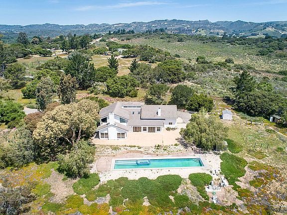 When distancing is necessary you want to dwell in a 5000 square foot home on over 20 acres with gorgeous views. Welcome to Wild Oak. This large home features 5 bedrooms, 4 full baths and 1 half bath inside the home, a 2 car garage with another room and bathroom. The kitchen is equipped with high-end appliances and offers a gorgeous country feel with it's farmhouse sink and is centrally located in the home and has access to both living room and family room, formal and informal dining area, access to the 3 bedrooms downstairs and has direct views of the Olympic size pool and Santa Rita hills. The master suite is upstairs and is attached to it's newly remodeled bathroom. The fairly level lot is AG-II and is cannabis-friendly. Do not miss out on this one!