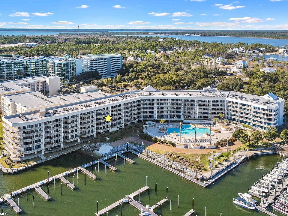 Featured is a 2 bedroom/2.5 bath at The Moorings. The Moorings is a sought after gated community located on Terry's Cove. From this condo you will enjoy beautiful bay views AND easy Gulf access by boat! The unit has so many features including, 11th ft ceilings, granite counter tops, spacious living/dining/kitchen area, large balcony with a built in gas grill, and huge master bathroom with a walk in closet. Within just a few minutes boat ride you can be in the Gulf of Mexico!. Complex amenities include a large resort style pool, hot tub, exercise room with sauna, owner's lounge, and fishing pier. After a day of boating you can walk to several local restaurants for dinner. Utilize the bike paths that can allows you to get the wonderful Gulf State Park or public beach. Whether you are looking for a residence or second home, this one would be a great option. Units at The Moorings do not come available often so do not let this one pass you by!