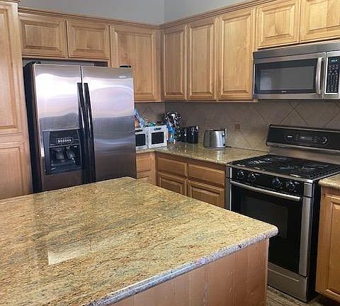 This home is very open and spacious. Living room (currently has home schooling set us) and den and dining area to rear of home. Kitchen has island. Their is also natural gas, and a covered patio area in between den and master bedroom doors. Their is a Giant, and I do mean Giant oak tree in back yard. RV access on side of home that takes you to back yard where you could store of all of your RV's etc. House has new flooring and is a beautiful tile also. Kitchen has granite counters, and when washing dishes you can look at that impressive oak tree. Inside laundry room. Master bedroom has small desk area or perhaps if you need more closet room hang a closet rod and get extra storage space. The master bath has a jet tub. Granite counters also. Cul de sac also.Front patio area for the enjoyment of those outside activities. Low maintenance as gravel front yard.Seller hasa home currently in escrow to buy, but all offers submitted to seller also have to state, it is contingent on closing another house in Riverside, which is also in escrow. Split wing floorplan, and both 2nd and 3rd bedrooms are extremly large and spacious.