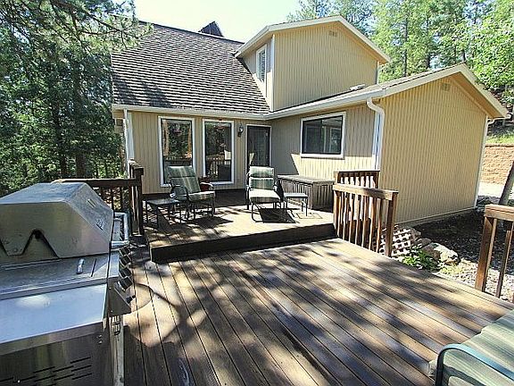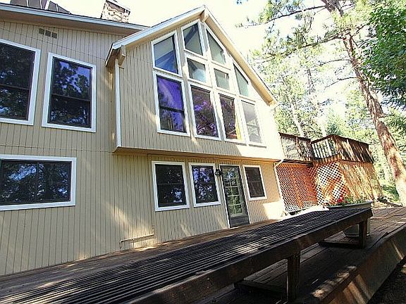 Surround yourself with forest views in this privately located 2 story home. Enjoy paved roads all the way up to the easy large drive-way and into the 2 car garage. Double decks, a patio off of the living room, garden space, and newer retaining wall. Floor to ceiling windows highlight the cathedral ceiling great room overlooking the forest, with wood floors, a stone hearth, and walk out to deck. Tile kitchen island, glass cabinets, opens to dining room with large windows over looking forest views. Large master suite including room for an office or sitting room, walk in closet, and large master bathroom. Remodeled lower level with travertine tile floors, stone hearth with natural gas fireplace, walk out to lower deck over looking forest, hobby room, and a large sauna. Newer double pane Andersen windows. The sauna, forest views, double decks, and gorgeous great room make this home the perfect mountain escape while only 6 minutes to town.