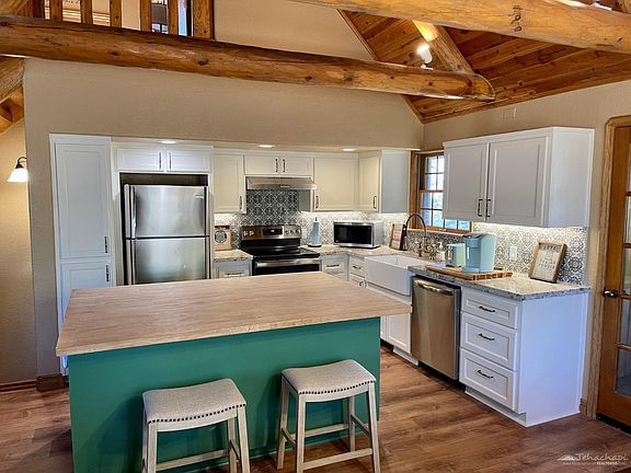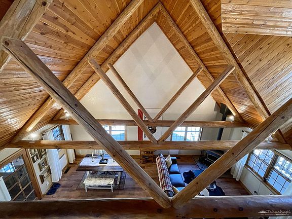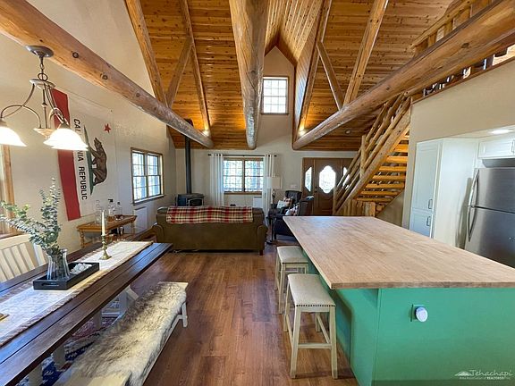 Own your private slice of heaven. Literally near the summit of Bear Mountain, this log-style home is at the top of the world. On a sprawling 5+ acres of pines, oaks, and granite outcroppings, featuring panoramic views of Bear Valley, you will have total privacy, while enjoying all the comforts of a meticulously maintained and beautifully decorated modern home. This is a perfect get-away for LA city dwellers looking for a turnkey, move-in ready mountain retreat, or a full-time residence if you are ready to call Bear Valley Springs your home. Only 2 1/2 hours drive from LA, the exclusive, gated community of Bear Valley Springs offers water, electrical, and this home has gigabit fiber optic internet services. In addition to numerous amenities, the area boasts several award-winning AVA wineries and culinary gems. You will never be short of things to do! Bear Valley Springs is a 45 square mile gated community located 2 1/2 hours from Los Angeles with it's own police and fire departments.This majestic home spans three levels. The centerpiece of the main level is a large open living/dining/kitchen area with soaring wooden ceilings, log rafters, and a wood-burning stove. The newly-renovated kitchen has a farmhouse sink, new appliances, granite countertops, and a gorgeous, huge butcher's block island with bar seating for your guests. Above the living room isa master loft with a large closet, a secretary desk, a king bed, a large glass sliding door that opens to a small balcony, and an ensuite full bathroom. On the main level is another bedroom/entertainment room with a queen bed, television, and a beautiful stone accent wall. This room opens to a huge wrap-around patio with a picnic table that is perfect for entertaining. Also on the main level is another full bathroom with a vintage clawfoot tub that can be used as a shower. Downstairs is a spare bedroom with a queen bed, large closet, as well as entry to a spacious garage.The house has newly-installed, waterproof, luxury vinyl plank flooring throughout, beautifully-stained wood ceilings, and wooden Andersen windows. Equipped with three forms of heating(wood stove, gas furnace, and electric wall heaters) to keep you cozy on winter nights, thehouse is also configured as a smart home for easy remote monitoring and control, and peace ofmind while you are away. Built with good bones'' and lovingly maintained, this home is fullyfurnished and decorated in a tasteful cabin chic'' style and ready for you to occupy from dayone!Adjacent lot MLS 9987543 is available for sale.