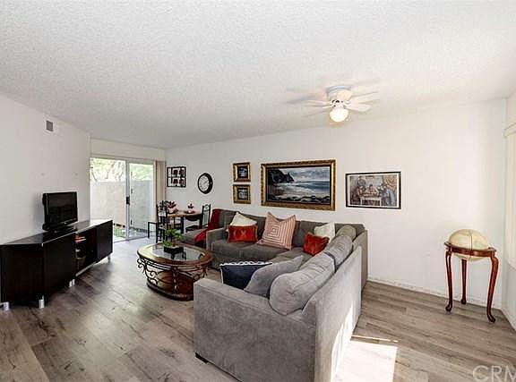 Ground level unit, no need to worry about stairs. Located in a very nice area of North Mission Viejo, Rainbow Ridge Community. Walking distance to shopping center. Very cute and cozy kitchen with stove, refrigerator, dishwasher and microwave. Stockable washer and dryer included as well. Newer Granite counter top and a very unique back splash. Newer vinyl floor throughout the entire house. Tile floor in bathroom. Living room with fireplace, upgraded with new beautiful granite. Full bathroom and an additional double sink in master bedroom as well as a walk-in closet. Very private patio in backyard perfect for those special BBQ days, and/or to relax with a glass of wine. Second bedroom with a spacious closet as well. One car attached garage. Community pool is walking distance from this unit.