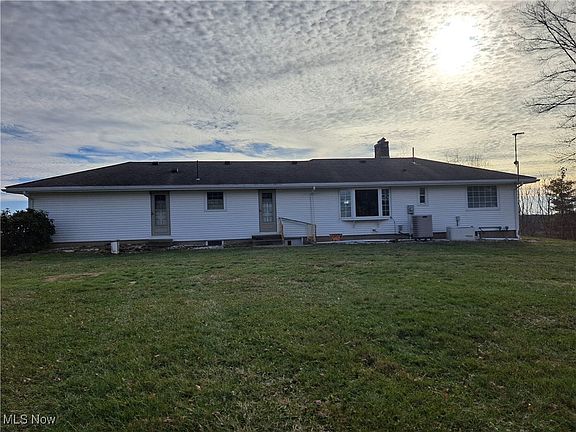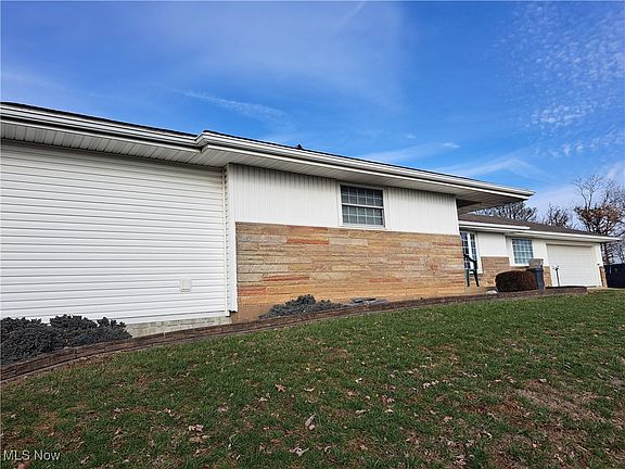 HIGH ON THE HILL with SPECTACULAR VIEWS is this WELL-BUILT RANCH on 6.9 ACRES in East Muskingum School District! The sun melts any winter snow off the PAVED DRIVEWAY which leads to this 3 bedroom, 2 full-bath home with natural woodwork and floors. It's your choice to enter through the front foyer with coat closet, door to kitchen/dining area or from the attached garage. The bright living room with a pretty brick fireplace and large window allows you to overlook the manicured front yard and awesome views. A dining room/den/office area with bay window offers more sunlight and super plush carpeting. The beautiful, updated kitchen is a cook's delight with newer oak cabinetry, under cabinet lighting, and a breakfast bar. The nice-sized master bedroom has its own updated master bath with a convenient laundry area with washer and dryer. There's a full, walk-out basement with fireplace, wood burner, propane wall unit, storage rooms, 2nd laundry area with washtub, plus plumbing for a 3rd bath. The front porch, front patio, and level back yard are perfect for entertaining. Plenty of parking in the attached garage and 32x48 DETACHED, HEATED GARAGE that's perfect for a business, workshop, or toys. Many extras include 3 propane tanks (2-house/1-garage), a Generac generator, a Clear Water osmosis water system, blown-in USA insulation, a 10x12 shed, gutter guards, built-in gun rack, water softener, and 2 hot water tanks. This wonderful ranch home awaits a new family and is back on the market at no fault of the sellers! Now's your chance! Call today to tour!