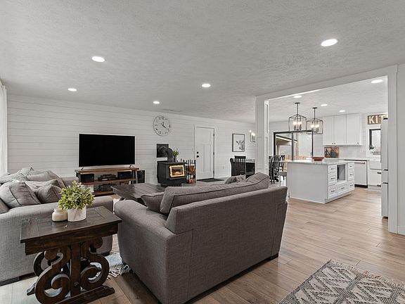 Newly remodeled farmhouse nestled on 6.74 acres with a year-round creek, several seasonal creeks, and a spring-fed pond. This beautiful property is perfect for small farm animals with two chicken coops, multiple stalls in the barn, and a fenced garden area with raised beds, an orchard, and a greenhouse. Ample storage with an attached 2-car garage, carport, tractor barn with 4 stalls, and a shed. Inside you'll find beautifully upgraded Provenza LVP flooring, white shaker cabinets, stunning quartz countertops, and an oversized farm sink with spectacular views of your farm. The upgrades continue with all-new energy-efficient windows, a metal roof, UV water filtration and softener system, recessed lighting, Karastan carpet, and more. Don't miss out on this one-of-a-kind property!