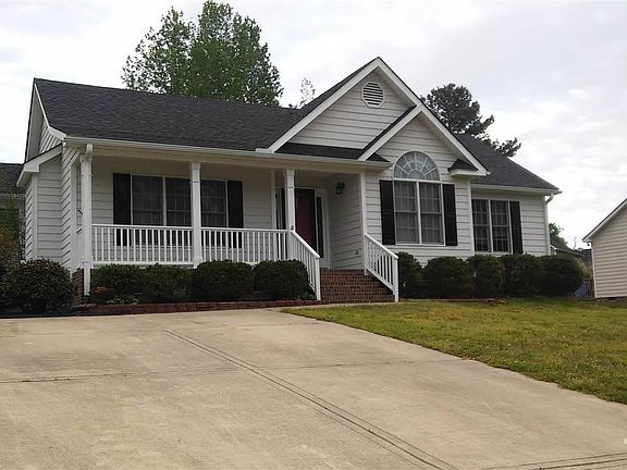 Lovely ranch with great 20 foot covered rocking chair front porch and back 12x10 deck and storage; new roof, new interior paint, home is refreshed and move in ready!!! When you walk in the door, you get this open feel with high cathedral ceilings with a ledge for plants or special sculptures; laminates in living kitchen dining and utility; large kitchen; gas fireplace with marble surround; master bath with double vanity; lg window in bedroom gives great light! One year home warranty with acceptable offer!