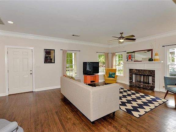 Charming! Double Porches welcome you home! Inside, hardwood floors on entire main level! Fireside Family Room, Dining and open Kitchen with Granite Counters and Stainless Steel Appliances! Huge Island encourages entertaining! Convenient half bath on main, with full laundry room! Open Staircase leads to Owners suite with Spa Bath, Plenty of closet space and access to private upstairs deck! Two additional Bedrooms share a hall bath! Light, Bright and always ready! Private Back deck opens onto fabulous fenced back yard and detached two-car garage with extra storage! Convenient location, easy commute.