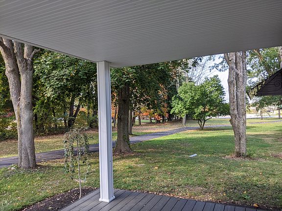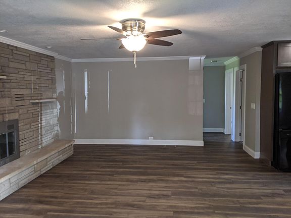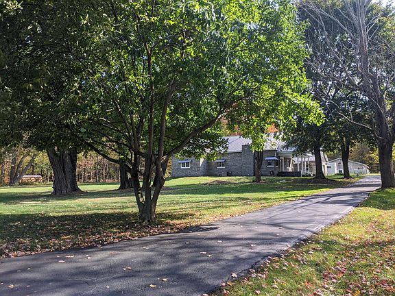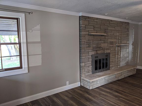 Sits back off the street on 10 acres of partially wooded property with a creek at the back end of the property. Unfinished basement with laundry room. Open floor plan. Completely remodeled. Granite counters in kitchen and main bath. Decorative fireplace. Large front porch. Flowering trees. Deer and turkey walk thru the yard on occasion. Tenant is responsible for paying for trash service, water/sewer, gas and electric. Tenant is responsible for lawn (approx. 4 acres) & garden care and snow removal. No smoking, no cats.