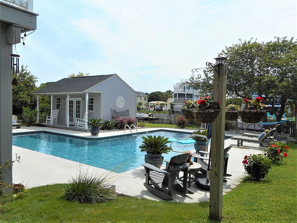 Watch the sunrise over the ocean from your living room and sunsets over the bay. 6 bedroom, 3 full bath, waterfront home and only steps to the ocean. First floor addition includes Jack and Jill bedrooms with full bath and double sink. Beautiful open floor plan on main living level with magnificent ocean views. A spiral staircase leads to a loft or 6th bedroom with unbelievable views of the Atlantic . Amazing saltwater pool that wraps around the pool house with fountains overlooking a large navigable canal only minutes to the bay. Several levels of decking. Updated dual-zone HVAC system. Whole house generator and central vacuum. Sprinkler system and underground drainage. No flood insurance requirement. Floating dock, two jet ski ports and a boat ramp. This home has never been rented. Whether it’s the beach, boating, fishing, or simply lounging by the pool all day, this house has something for everyone! Complete kitchen remodel with quartz and GE Cafe appliances