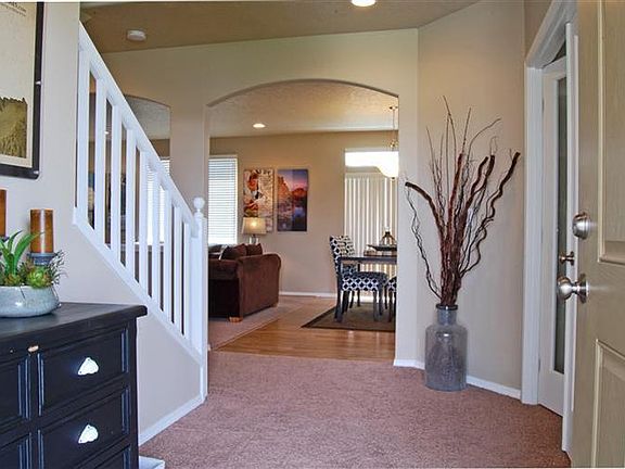 Stoneridge floor plan including: Stainless Steel GE gas self-cleaning range, granite kitchen counters, birch cabinetry, dining room fixture upgrade, engineered hardwood, fireplace with alcove, utility room wall cabinets, garage door opener, masonry accents, lap siding and more.