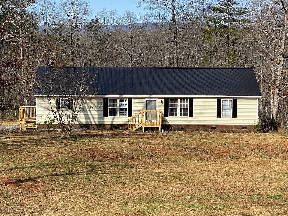 Affordable Country Home with 8.95 of mostly wooded acre. The home site is private and has the potential for a great garden spot, chicken house, barn or whatever you want to raise. The first things you will notice is the 7/12 roof pitch (normal is 3/12 for a manufactured home) and the new black metal roof. They make the home look very residential. The home is a totally refurbished 2002 Oakwood Manufactured Home with new carpet, paint, and appliances (including the refrigerator). Plus, the porches and deck are new. Located in the foothills near Walnut Cove and Hanging Rock State Park. Walnut Cove is the home of Family Pharmacy and the Walnut Cove Springfest which draws many visitors to the area. Festival-organizers marked 1889, the town's incorporation date, but the town's roots date to the mid-18th century when it was known as Town Fork. The Town was a railroad center in its former years, and today remnants of the old Train Depot still stand on Depot Street. Hanging Rock State Park is a 9,011-acre North Carolina state park in Stokes County. It has trails to waterfalls and rock outcrops overlooking mountains and the piedmont. There are 20+ miles of hiking trails, mountain bike trails, and horse trails. Swimming and boating is available on the lake in season. Fishing is available year round on the lake. 45 minutes to Winston-Salem, NC, a major shopping hub with some of the best hospitals in the state. Even though your home is in the country, you're stilll close to brand name stores, hospitables, colleges, and the Piedmont Triad International Airport. Winston-Salem is a top rate city where the economy is growing due to its progressive attitude, great people and affordability.