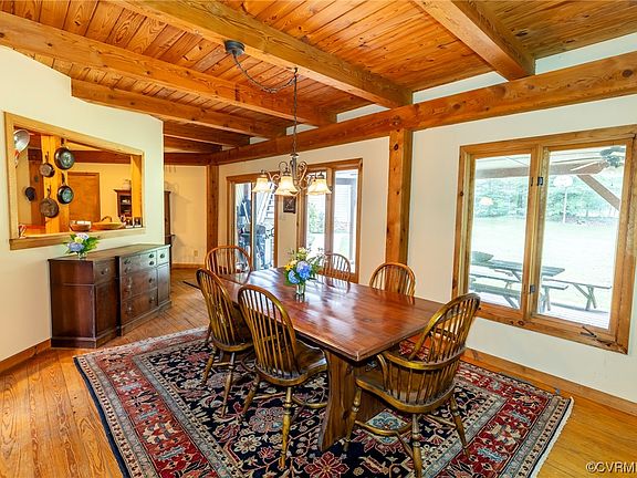 UNBELIEVABLE OPPORTUNITY! CUSTOM HOME BUILT ON 13.50 ACRES FEATURING MAIN HOME W/AUTHENTIC TIMBERFRAME DESIGN, DETACHED GARAGE W/FULL INDEPENDENT APARTMENT (SQFT 917), INDEPENDENT OFFICE W/HALF BATH & STORAGE (SQFT 312), 13.50 ACRES ON JONES CREEK FEATURING RUNNING CREEK, HARDWOODED PARCEL, POND, METAL BARN/STORAGE, RV HOOKUPS IN DETACHED GARAGE. THE MAIN HOME OFFERS OVER 3,200 SQFT W/PARTIAL CONVENTIONAL & TIMBERFRAME CONSTRUCTION. TIMBERFRAME FEATURES CYPRUS & DOUGLAS FIR WOOD. FLOORS IN HOME ARE ARKANSAS RANDOM WIDTH WOOD. OTHER FEATURES INCLUDE-PRIVATE POND, RUNNING CREEK, REAR PORCH, FRONT DECK, 4 BEDS-1 W/INDEPENDENT ENTRANCE/EXTERIOR STAIRCASE, VAULTED GREAT RM W/WOODSTOVE, LOFT AREA, ENDLESS STORAGE, 2 FIRST FLOOR BEDROOMS, GREAT WORKING KITCHEN W/BAR, OPEN DINING CONCEPT, TANKLESS HOT H20 HEATER, GARAGE W/INDEPENDENT POWER METER/RV HOOKUPS, HOUSE SIDING IS PONDEROSA PINE, GARAGE SIDING-CEDAR. INCREDIBLE OPPORTUNITY TO MAINTAIN A PRIVATE RURAL LIFESTYLE YET ONLY 9 MINUTES TO ROUTE 288/HUGUENOT TRAIL. BRING YOUR ANIMALS, GARDEN DREAMS, ATV'S & HUNTING EQUIPMENT. COME HOME TO TRANQUILITY! INCREDIBLE LOCATION, SETTING, CHARACTER AND OPPORTUNITY. (NOTE NEW STONE ON THE CHIMNEY)