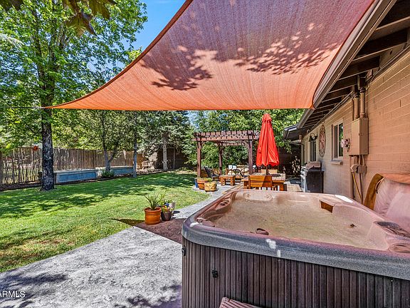 Beautifully crafted modern remodeled home in Cheshire Estates. You will not want to miss this custom updated 4 bedroom 2 bath home on corner lot. Open concept living area with wood laminate flooring in all the right places. New Kitchen Aid stainless steel appliances, updated designer cabinets, backsplash and counter tops. Sit at the breakfast bar and gaze out to your private backyard oasis. Backyard has grass, pergola, raised beds, hot tub, 8 foot privacy fence covered with bamboo and lots of mature and lovely foliage. Workshop area on one side and storage room on the other gives plenty of room for bikes, tools and toys. Service panel for electric and gas with junction box in attic is ready for a 2nd story addition if desired. Views of San Francisco Peaks from living room and front yard. FUTS (Flagstaff Urban Trail System) is across the street and you are 20 min from the slopes at Snowbowl!!!