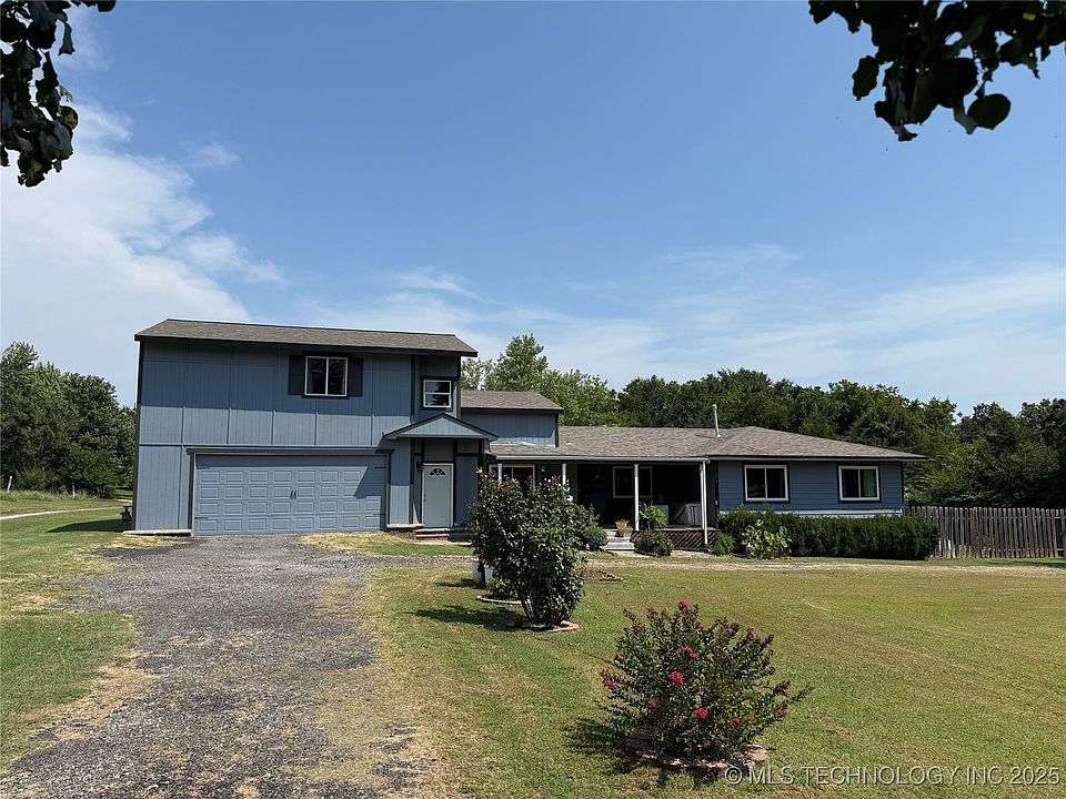 1 Acre lot in the Broken Arrow School District with a 4-bedroom, 3-bath, 1½-story home offering 2,188 sq ft (ch), built in 1989 (ch). The spacious upstairs master suite features a walk-in closet, sitting area, fireplace, private balcony, and oversized walk-in shower. Updates include a newer roof, new HVAC, and an insulated 2-car garage with AC. Property also offers a 26x26 insulated shop with electric, AC, and concrete floor, plus an attached 26x50 shed. Fruit trees add charm, and the home is ready for your finishing touches on the 2022 addition. Great country location, close to shopping & entertainment!