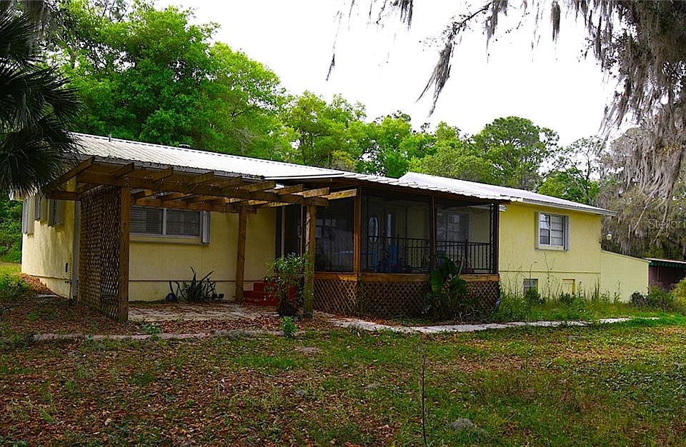 VERY LARGE HOME ON 8 ACRES! You will fall in love with this nearly 3,000 square foot custom 4 Bedroom/ 2 Bath paradise. This just about move-in-ready home is in gorgeous Okahumpka in coveted Lake County! (Watch a virtual tour now: text agent Al Spry for link) Enter your home via a country-style front porch into a warm living room with working fireplace. Hardwood and tile flooring feature throughout the home. To your right is the large country kitchen with custom solid wood cabinetry and cooking island. All appliances included! To your right is the formal dining room. Most rooms feature lighted ceiling fans. Split Bedroom plan with spacious master bedroom. The master bath features a vintage style clawfoot tub, and separate shower stall. Through the French doors is a breathtaking bonus/walk in closet - as big as a bedroom! Off the kitchen is an inside utility/laundry room with washer and dryer plus a bonus walk-in storage closet with generous shelving. Down a corridor you'll find an enormous 3 part loft studio and discover another clawfoot tub. It also has its own private entrance...use your imagination to make this space your very own! To the left of the living room are two more bedrooms and a second full bathroom. Head to the basement and you will find a 4th bedroom with huge walk in closet/storage room. Beside the bedroom is the unfinished basement portion for even more storage or a recreation room...it is big enough for a pool table! Outside is a botanical area featuring a greenhouse and a covered seating area. There is also a carport attached to the house, a tall wooden storage barn, and 2 extremely large metal storage containers already on the property. All this for an unbelievable price! Great value for a cash buyer, conventional loan buyer or investor. Close to Tavares, Mount Dora, Leesburg and right near the Turnpike! Seller motivated, so bring your offer today!