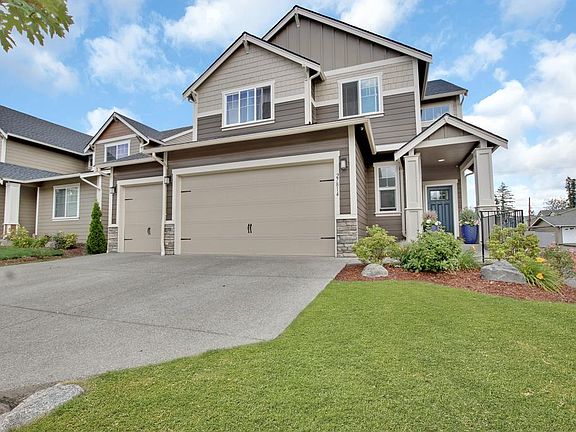 Fall in love w/ this gorgeous newer construction home on dead end street! Main level features 3 car garage and open concept living, kitchen and dining rooms. Main floor office. Covered deck w/ gas plumbing for grill. 2nd Floor features 4 bedrooms, 2 full bathrooms, large linen closet, laundry room and loft space. Third floor bonus room with 3/4 bathroom & spectacular views of Mt Rainier - great second master or space for rec room, media room, guest room, or play space. Great schools and proximity to freeways, shopping and more! Renter responsible for all utilities and yard maintenance. First, last and deposit due at signing. Credit score of 680 or higher welcome to apply. Thank you!