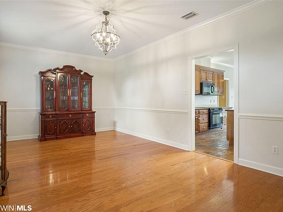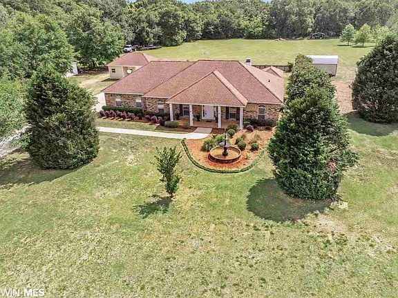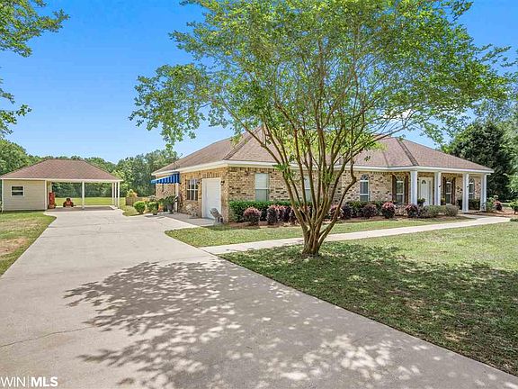 Location, location! Spacious and move in ready. This lovely home is situated on an estate three acre lot with a sparkling pool in the heart of Daphne. You will immediately be charmed with the welcoming curb appeal of this home. The long driveway is lined with gorgeous mature Crepe Myrtle trees. The front entry is accentuated with a stately art deco metal cascading fountain and large covered front porch. Upon entering the home you will be awed by the expansive view of the pool and yard from the foyer. The home is light, bright, open and airy with high ceilings and large windows. The main living areas have been freshly painted and new carpet installed. There is an office and over-sized formal dining room off the foyer. The kitchen features an island, pantry, built in electric range, microwave, dishwasher, disposal, bar for casual meals and a breakfast room all with views of the yard and pool. The living room is spacious and open to the kitchen and has a cozy gas log fireplace, tall ceilings with crown molding, recessed lights and ceiling fan.The split floor plan with large bedrooms and bonus room make this home perfect for multi generational living. The master bedroom has dual closets and vanities. The features continue outside and offer the best in outdoor entertaining with a sparkling 15'X25' pool which has a new liner, a large concrete, covered patio wired for television, an expansive deck for sunning and a covered lounge area. There is a one car attached garage, in addition to a two space carport with attached work room/storage that could accommodate a boat , ATV's or work equipment. The HVAC is 3 years new and the house has been completely re-plumbed. Call today to schedule your private in person or virtual tour. You will not be disappointed.