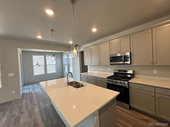 This home is estimated to be completed in October 2024. The fabulous Lory plan offers 3 bedrooms plus a loft on the upper level as well as a main floor study/flex room. The open main floor has a large kitchen with a huge island and loads of countertop space. Stainless steel Samsung appliances, tankless water heater and Halo air purification system are also included. The covered patio off the nook gives you great outdoor living space and this home also faces the greenbelt. Make an appointment to see your new home at Inspirada Prairie Center Village today! Photos are representative only and are not of the actual home. Actual finishes, elevation, and features may vary.