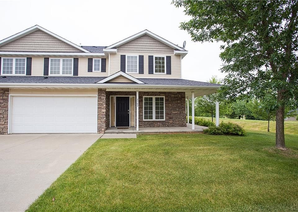 End unit townhome in highly desired development located in Clive and the Waukee school district! Great floor plan. Open layout on the main level with corner stone fireplace, 1st floor laundry, and 1/2 bath. 2 car attached garage leads to kitchen entry for easy grocery drop off. 2 large bedrooms on 2nd level including the master bedroom with walk-in closet ad master bath with tiled shower. Lofted area on 2nd level adds great space for a desk/office area. Kitchen sliders lead to open patio and nice yard space with mature trees. Wrap around porch adds extra curb appeal and outside seating with the corner lot. Investor and pet friendly-ask your realtor for more details. Call today, these don't last long!