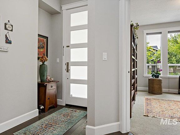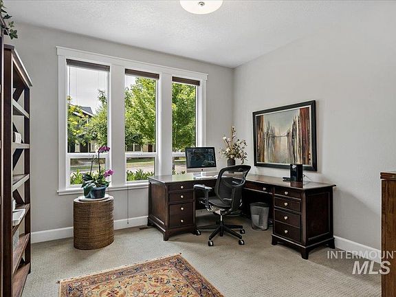 Well-maintained, one-owner home located in East Boise's beautiful Harris Ranch. The MASTER SUITE ON THE MAIN FLOOR is a rare find. A former model home includes all of the best finishes and fixtures. Quartz counters, stylish lighting, engineered hardwood floors, tile, and textured carpet showcase this home. Light, bright kitchen features large island w/ counter seating, like-new stainless appliances, walk-in pantry, and media nook. Formal dining space and the comfortable living room has large windows and a gas fireplace with floor-to-ceiling stone accents. Spacious, well-lit office/den. 2 bedrooms, with sitting area and full bath. The home also features a large 3-car garage with custom storage cabinets and workbench, covered front porch seating for morning coffee or afternoon sunsets. The private, fenced patio w BBQ gas hookup and low maintenance yard is perfect for outdoor BBQs and shaded afternoon relaxation. Community pool, river, greenbelt trail, parks, golf, shopping, dining close by!
