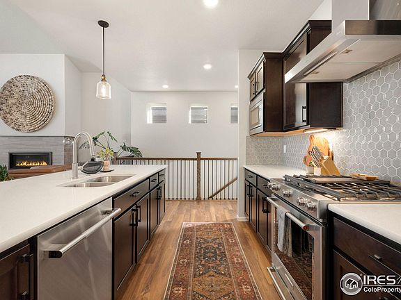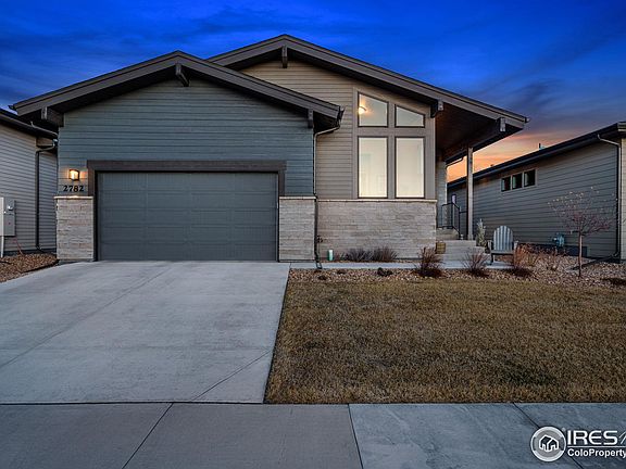 This gorgeous waterfront patio home has mid-century modern vibes coupled with classic finishes and tones to compliment all decor tastes. The accordion slider to the composite deck opens to picturesque views of the water and mature trees. Fully fenced yard is low maintenance and appointed with plants and shrubs that thrive in Colorado weather. Breathe easy with main level living, including primary suite and additional bedroom, each with a private bathroom. Front yard maintenance and snow shoveling is provided by the HOA. The finished basement is a garden level sanctuary truly worthy of relaxation with two additional bedrooms and a 3/4 bathroom. Summer fun includes a short walk to the community pool and clubhouse and Timnath Reservoir trails. Enjoy the view!