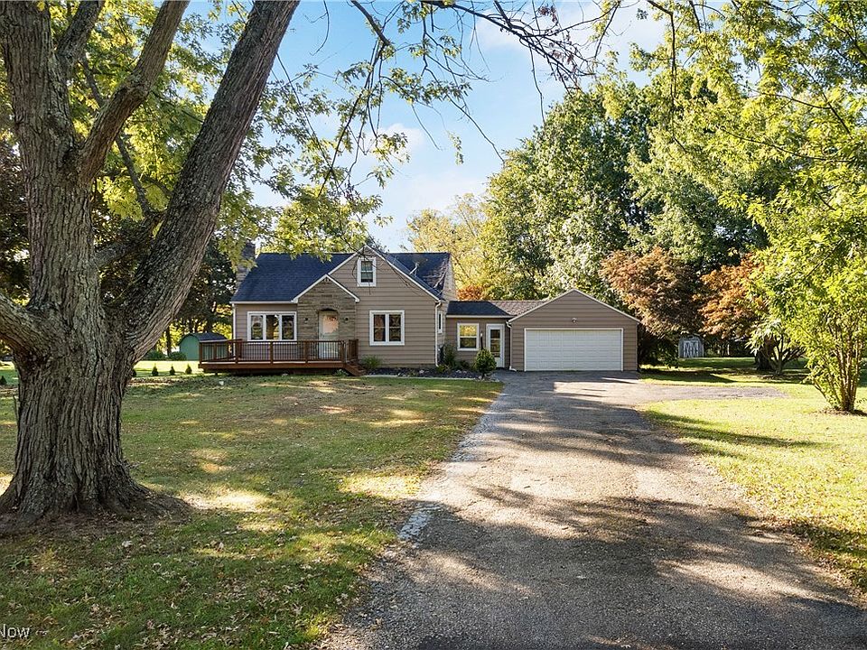 Stone-front 3 bedroom 2 full bath home on an extra wide 1.93 acre wooded lot. Major updates include a newer roof, HVAC, doors/windows, and septic. Beautiful refinished hardwood floors throughout the first floor. Newer front door and storm door enter to a quaint foyer with coat closet. Bright living room with large picture window, ceiling fan/light, and a wood burning stone fireplace with tile hearth, sandstone mantle, and glass doors. Large kitchen with tile floors has lots of counter space and wood cabinets. 2 nice-sized bedrooms and closets on the first floor, both with newer modern ceiling fans and overhead lights. Updated main bath on first floor with tile floor and oversized tub/shower. Classic built-in storage cabinet and drawers feature in the hallway between the bedrooms. Wood stairway leads to the 2nd level with newer carpeting, a full bathroom, and 3 versatile rooms that could be used as the main bedroom, or as a rec room and office, or all of those options together. There are also 2 large knee-wall storage spaces for a dry and convenient 2nd floor storage option. Waterproofed basement has another wood burning stone fireplace, a nice laundry area, and all glass block windows with vents. The breezeway has a door into the home, one into the garage, and then 2 doors leading outside to the front and back yards. Oversized 24 x 20 garage with 2 man doors, drain, opener, & newer electrical. Paver patio off of the breezeway overlooks the scenic back yard. 212’ wide by almost 400’ deep lot backs to wooded areas with trails and fruit trees. Outdoor stone grill with chimney and storage shed in the rear yard. Newly built front deck with black metal balusters. Home is very nicely set back from the road. Paved turn-around and/or parking area off of main driveway for convenience.