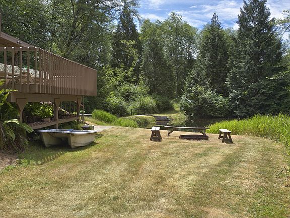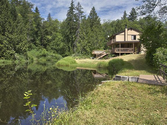 7 acres of tranquility & peace surround you on this private compound complete w/seasonal stream & 1/3 ac. trout pond! Only minutes from I-5 this incredible property has 2 separate living spaces (MIL above finished shop/garage) & covered parking for 9 vehicles. This custom built 1 1/2 story home and MIL includes 4 bdrms, 3.5 baths & over 2600 sqft of living space! Outdoor recreation abounds from one of the many decks, firepit or walking trails that encircle the home. A greenbelt from every window!
