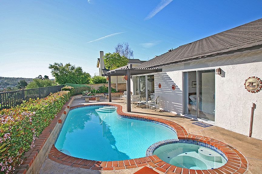 Beautiful and private single level pool home with views, RV parking, solar and new windows located in the heart of Mission Viejo. Quintessential spanish style architecture greets you as you enter through the wrought iron gate that leads into a private courtyard that wraps around to the backyard. Enjoy the breathtaking views of the Saddleback mountains and the city while relaxing in the pool or spa. Inside you will find a fantastic open floor plan that has a dining room with a cozy fireplace, family room and additional space for an office or living room. Adjacent to the dining room is a well appointed kitchen with quartz countertops and updated cabinetry. Three nice sized bedrooms complete this fabulous home. Additional features include porcelain tile flooring throughout the home, attic with a pull down ladder and Tesla charger in the garage. Walking distance to Lake Mission Viejo and pocket park that features a dog run and walking trails. LOW HOA and NO MELLO-ROOS!!