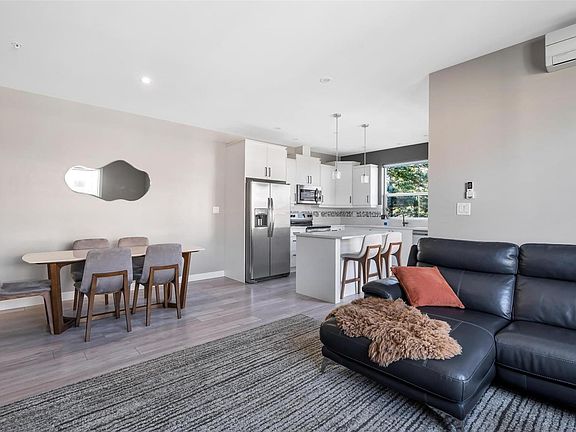 Welcome to Top Floor living at Westshore Flats! This immaculate top-floor corner condo offers 1,108 sq ft of bright, modern living with 2 bedrooms and 2 bathrooms. Built in 2019, this home feels brand-new and features an ideal open layout. A skylit foyer leads to the great room with 9 ft ceilings, electric fireplace and south-west windows flooding the space with light. The designer kitchen impresses with quartz counters, stainless appliances, slow-close cabinetry, ceramic backsplash and an island connecting the dining and living areas. Step out onto the SW exposed 10’×8’ deck, perfect for relaxing or entertaining. The spacious primary suite includes dual 6' closets and a stylish ensuite with walk-in shower, while the second bedroom sits beside the main bath. Westshore Flats is pet-friendly (no size limits), allows rentals/BBQs and sits steps from Goldstream Ave, downtown Langford, parks and trails. Walk Score 90 / Bike Score 92 – a rare top-floor corner gem in an amazing location!