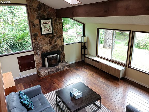 Updated contemporary home in serene wooded setting on dead end. Filtered views over the city, Newer updates: hand scraped walnut floors, newer fixtures like dishwasher, range, micro, sink, faucets, disposal, toilets, lights & fan. New Roof in 2015, new windows in 2016, newer Lennox furnace and heat pump. Oversize garage with work area, mature landscape, fenced and paver patio. See today !!