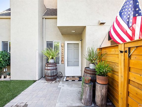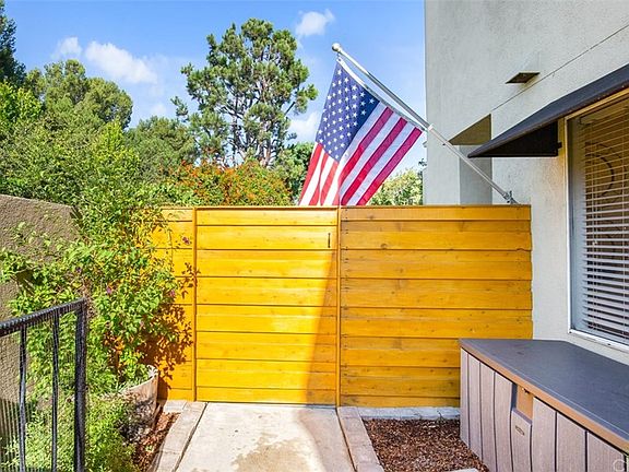 This three bedroom town home in the desirable community of Rainbow Ridge is absolutely one of a kind, with one of the largest yards in the entire community. As an end unit, the side yard and backyard are extra large. The entryway has a custom wood gate that allows an enclosed yard. Entering through the front door, you will notice the natural lighting throughout the entire downstairs by the many windows with custom blinds. The open concept is perfect for entertaining as the living room opens up directly to the kitchen. The downstairs bedroom is freshly painted, newer ceiling fans, and has a new sliding door that leads out into the extra large back yard. The upper guest bedroom is freshly painted with custom ceiling fans. The Master Bedroom is very large with high ceilings, large windows, custom ceiling fan, and a nice westerly view into the neighborhood. The Master Bathroom has a granite counter top, and a walk in shower. The one car garage has direct access to the interior of the home. The HOA includes two community pools with a playground. This home is close to award winning schools, restaurants, shops, & Mission Viejo Lake. This home is the jewel of Rainbow Ridge. Welcome Home!