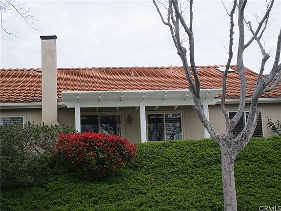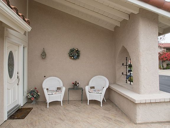 Lovely home on a view location. Rosa floor plan with 3 bedrooms, 2 baths, and 1503 square feet. Light and bright throughout. Freshly painted with two tone paint colors throughout. Scraped and textured ceilings throughout. Light and bright kitchen with newer cabinets and pull-out drawers. Plantation shutters throughout. Newer windows and sliders throughout. Newer front door. skylights in the second bathroom. Newer heating and air conditioning system. Newer tile roof. Good size patio with views and metal cover. A beautiful place to call home! Community is spread throughout 484 acres with mature trees and beautiful hills. Association offers two recreation center which offers pool, spa, club house, tennis, gym, paddle tennis, shuffleboard courts, billiards and much more. Trash pickup and outside painting are covered by the association. This is a 55+ community that one resident must be 55 years and older and the rest of the residents have to be 45 years and older.